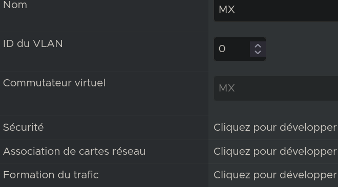 Enfin, créez un nouveau groupe de ports « MX » que vous associerez au commutateur virtuel « MX ».