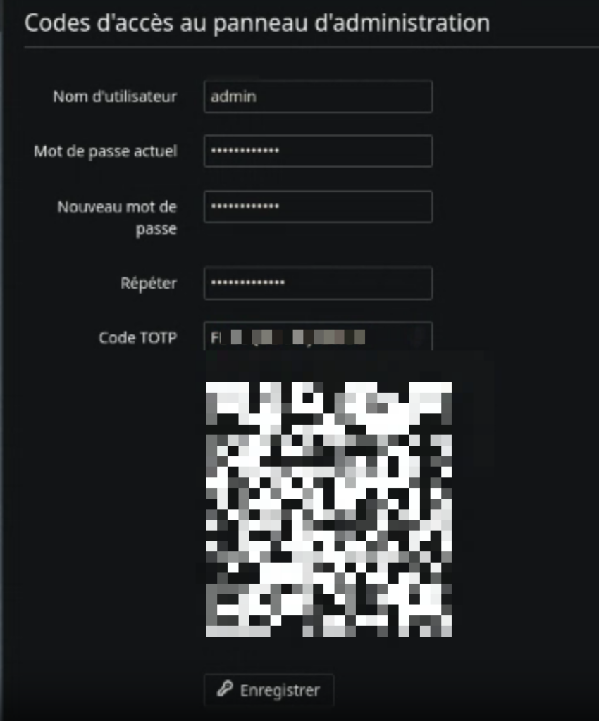 Configuration du TOTP du compte admin