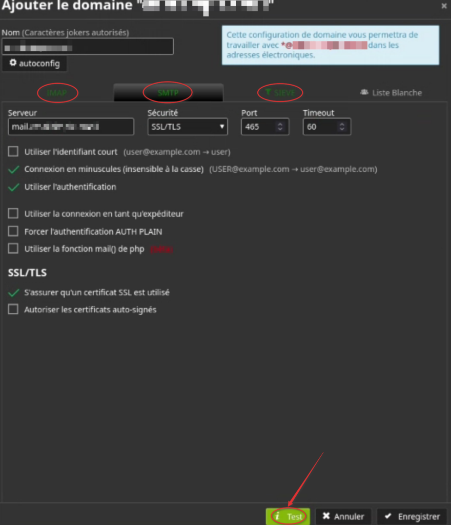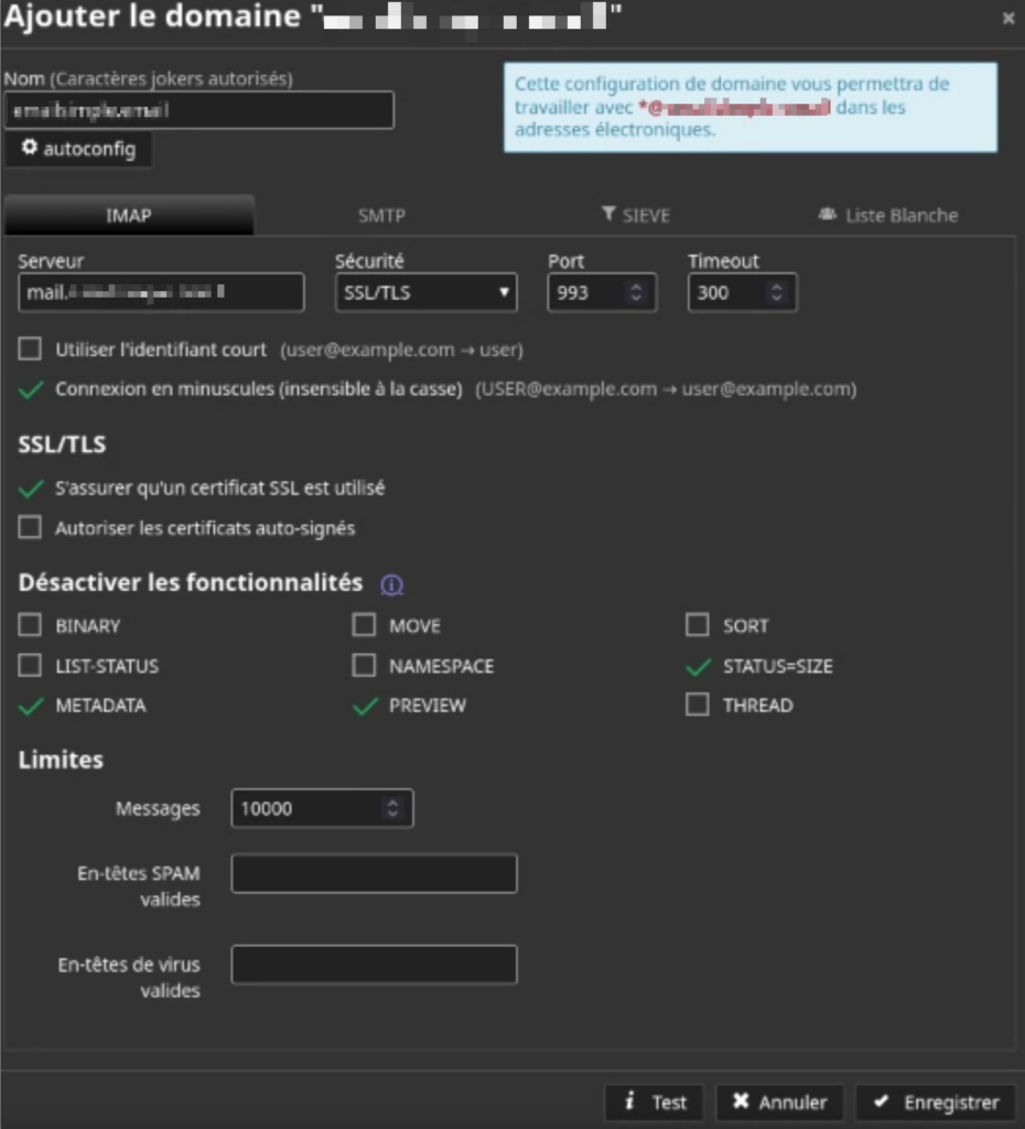 Rajout des domaines dans SnappyMail