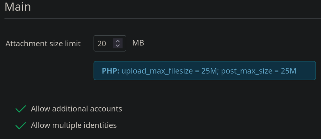 Dans Docker, la taille des pièces jointes est déjà définie. Il nous faut définir la même taille dans Snappymail.