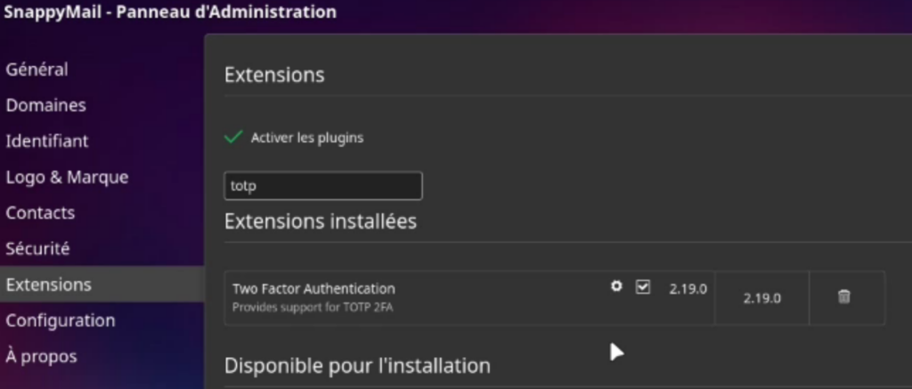 Dans SnappyMail, retournez dans le panel d’administration.