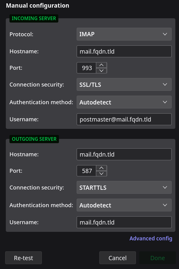 Server (il s’agit de votre nom de serveur mail principal) : mail.FQDN.TLD