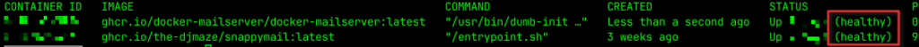 docker compose up -dAttendez entre une et deux minutes que le conteneur démarre et passe en « Healthy » :