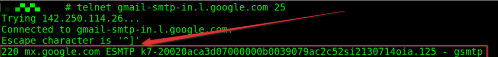 telnet gmail-smtp-in.l.google.com 25Voici comment interpréter le résultat :